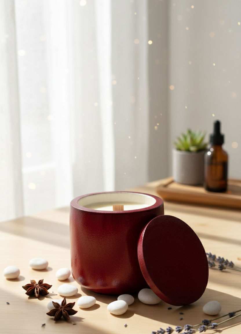 Diese Kerze verkörpert modernen Luxus und Raffinesse. Ihre satte, tiefrote Farbe, kombiniert mit einer makellos glänzenden Oberfläche, zieht die Blicke auf sich und schafft eine Atmosphäre der Leidenschaft und Festlichkeit. Sie ist nicht nur eine Kerze, sondern ein lebendiger Akzent, der ein modernes Interieur perfekt ergänzt und Eleganz und Dynamik verleiht.