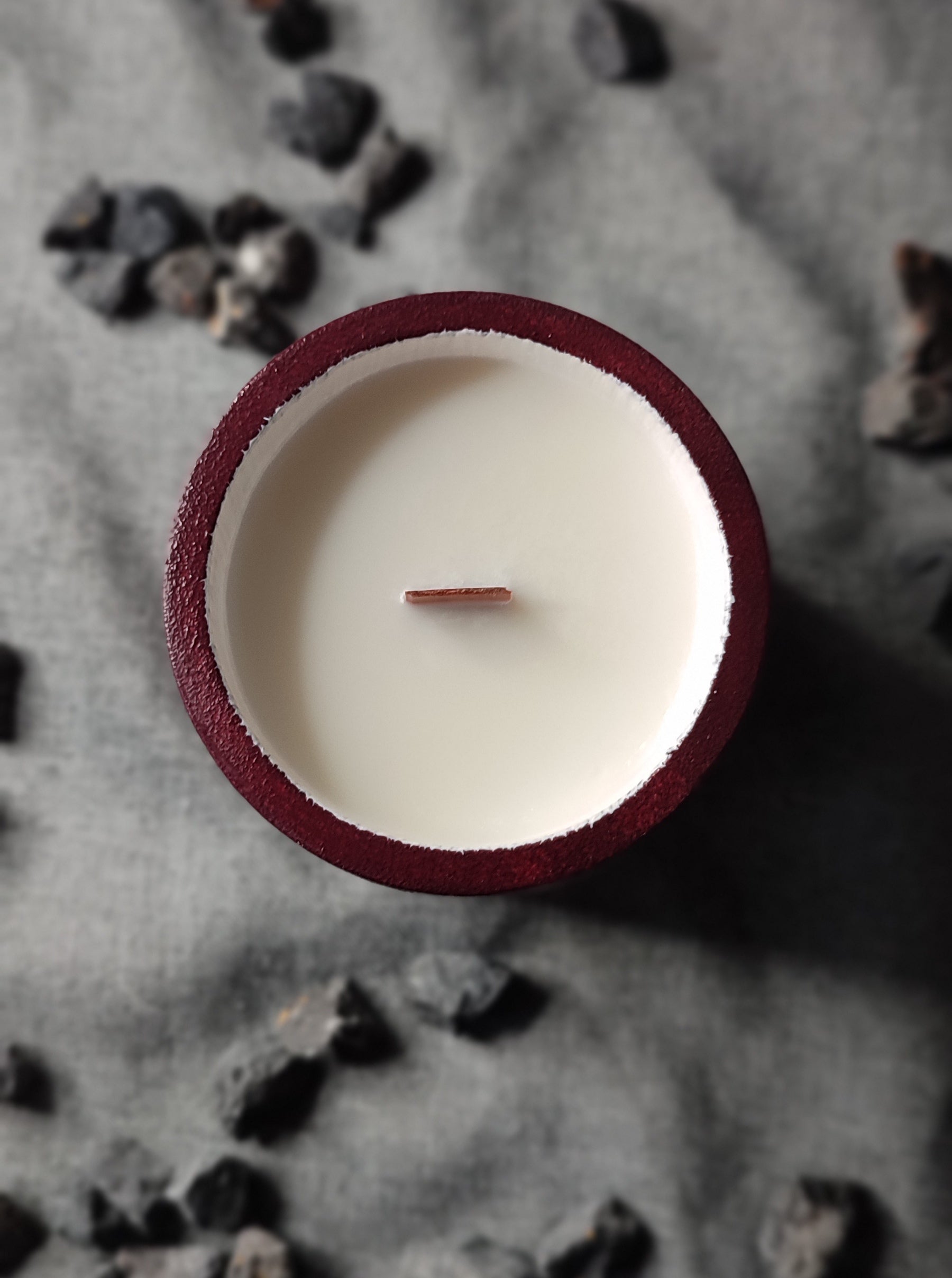 Ihre minimalistische Form unterstreicht den tiefen Farbton, während der passende Deckel den letzten Schliff verleiht. Die Kerze ist perfekt für einen romantischen Abend oder um zu Weihnachten oder zum Valentinstag eine festliche Atmosphäre zu schaffen.